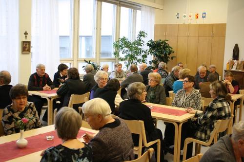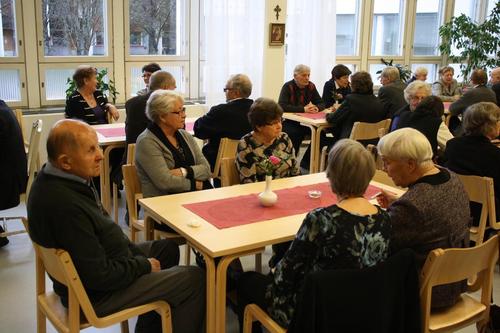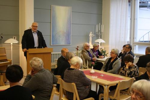Maistuvan lounaan äärellä oli peräti 89 senioria, jotka kuulivat myös fil. tri Seppo Niemelän mielenkiintoisen esityksen Lapuan menestyksen ja tulevaisuuden ainespuista. Kuvat Heikki Keisala