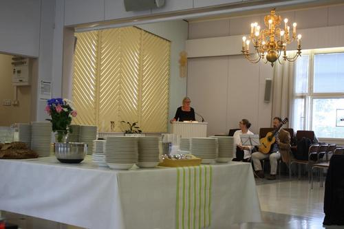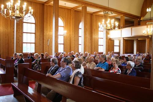 Lapuan vuoro oli järjestää piirin kesäjuhla, ja kutsu kävi Tiistenjoelle, puheenjohtajan kotikylään. Aluksi oli keittoruokailu, maukasta lihakeittoa ja herkullista jälkiruokaa, musiikin soidessa. Leppoisaa kesäilllan alkua voi viettää kirkonmäellä, ja sitten siirryttiin kirkkoon, missä kirkon isäntänäkin toimiva Tapio Rintaniemi esitteli kirkon. Siirryttiin joen toiselle puolen, Luhurikan kesäteatteriin, jossa katsottiin Larvateatterin esittämä Rakastettu Johansson. Väliaikakahvit kuuluivat myös ohjelmaan. Osanottajia oli 110, mutta muualta maakunnasta olisi saanut olla enemmänkin. Kuvat Heikki Keisala.