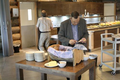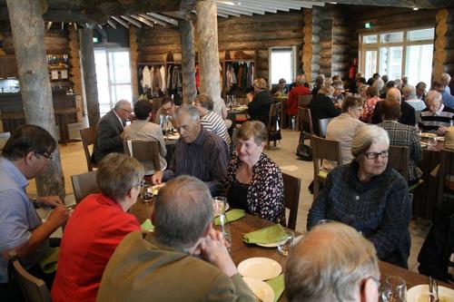 Alahärmään, keskelle-ei-mitään, on Kalevi Hanhimäki kaivattanut lumoavan kauniin tekojärven ja rakentanut uskomattoman kelopuisen lomakeskuksen. Himmeli-ravintolassa nautimme erittäin maittavan lounaan ja sen jälkeen isäntämme kertoi paviljongissa hulluista ideoistaan ja niiden toteuttamisesta. Sen tuloksena vieraita saapuu ihan ympäri maailmaa ympäristöön, jonka he kokevat aivan eksoottiseksi. Kuvat Heikki Keisala