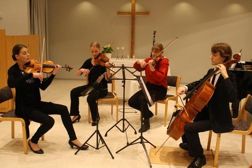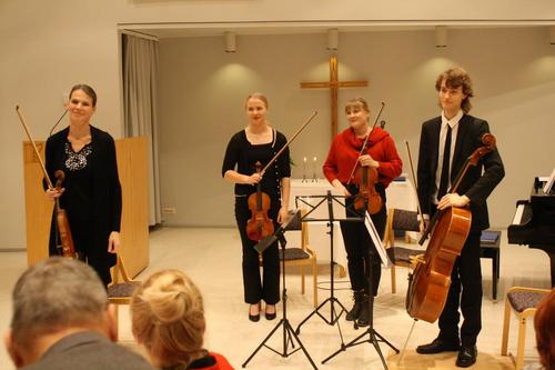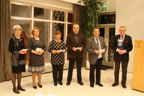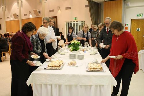 Opiston runsaan joulupöydän ääressä oli 90 senioria. Ohjelmassa vierailijoina olivat seurakuntapastori Heli Pääkkönen vaikuttavalla jouluhartaudellaan ja Anu Haaviston vetämä jousikvartetti. Omaa väkeä edustivat Aino Koski, Tanja Rintaniemi ja Heikki Keisala, ja tietysti puheenjohtaja Tapio Rintaniemi. Kuvat Heikki Keisala