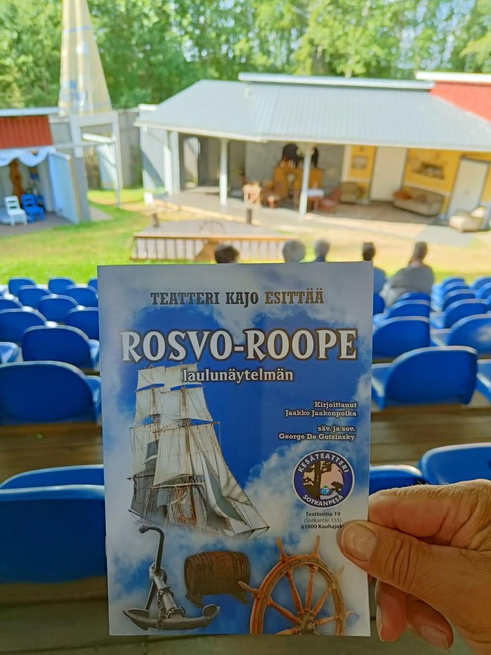 27.7.2025 klo 14.00 Teatteri Kajo Kauhajoki, "Rosvo Roope" Ensin lounas Ravintola Kotipadassa, Sitten esitys ja väliajalla kahvit.