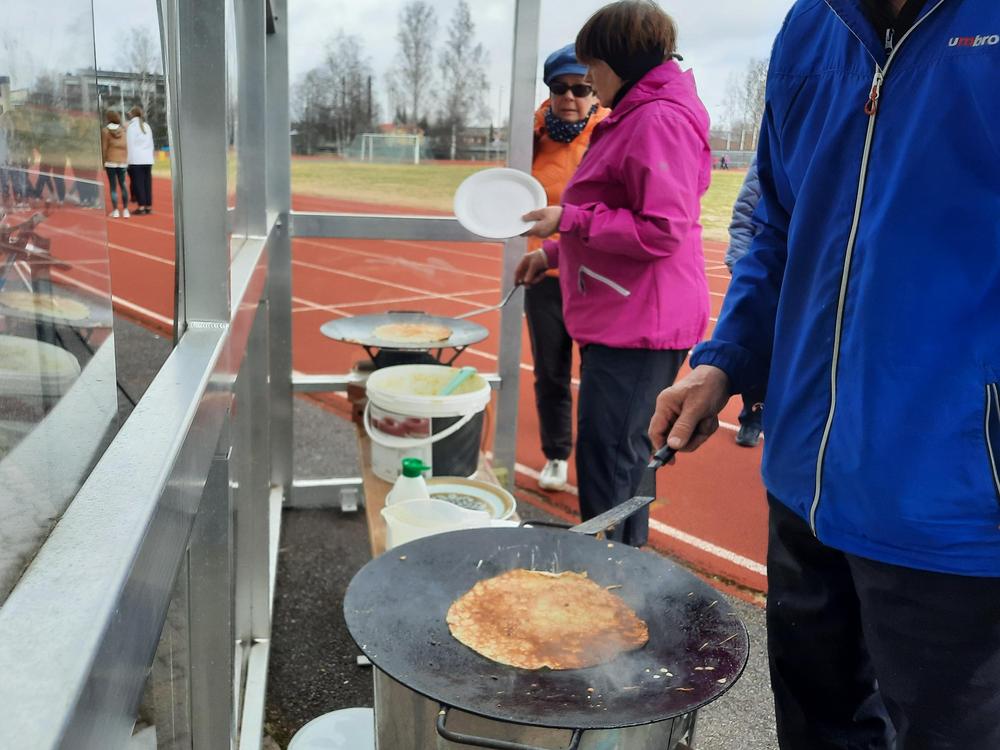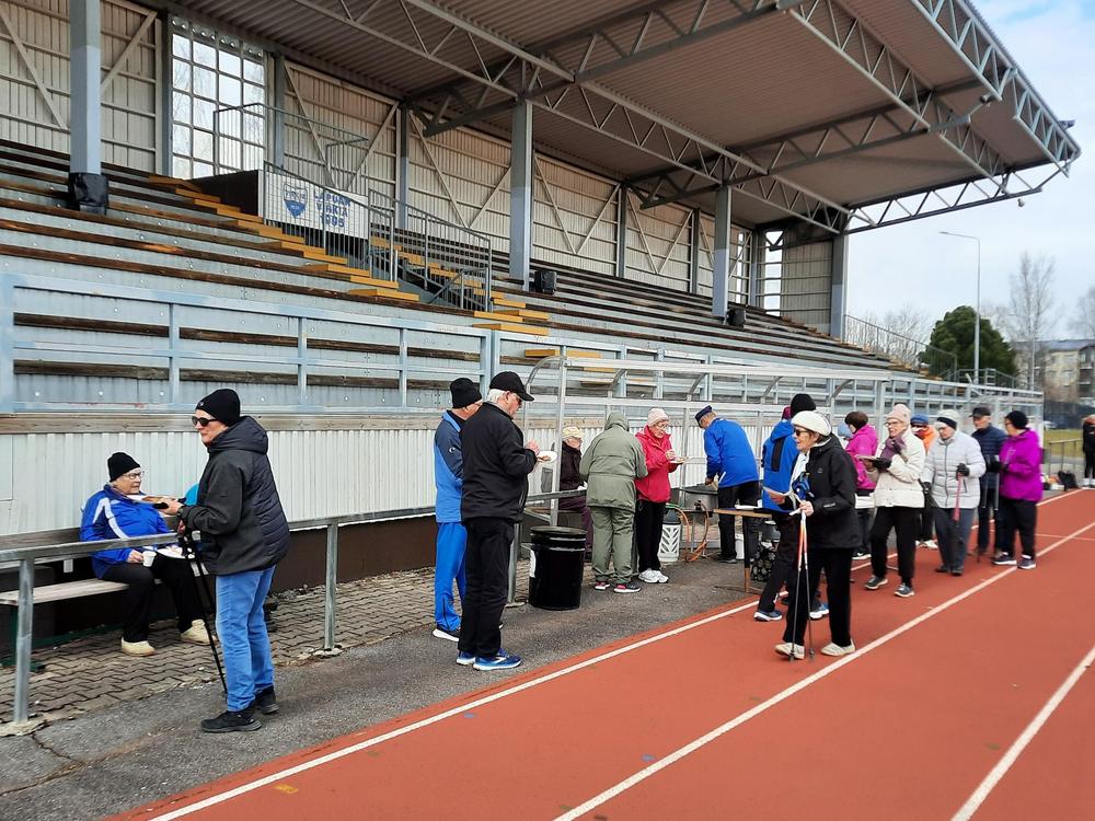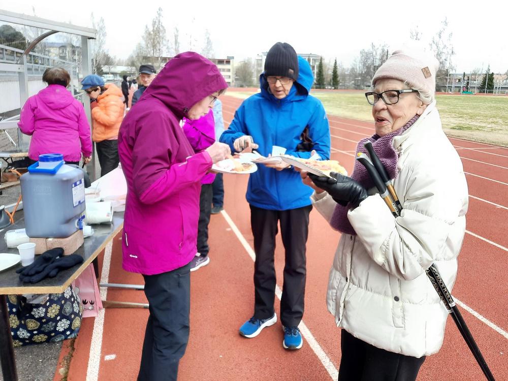 - Ke 3.5. klo 13.00 Seniorikävely Keskuskentälllä, sauvojen kanssa tai ilman. Teemalla "Liikutaan yhdessä" oli liikkeellä jälleen lähes 40 senioria, vaikka oli tosi kylmä sää, joka lopuksi yltyi lumikuuroon. Plätty- ja mehutarjoilu palkitsi kävelijät, paistajina Ritva ja Martti, ja muuten palvelemassa Kirsti.