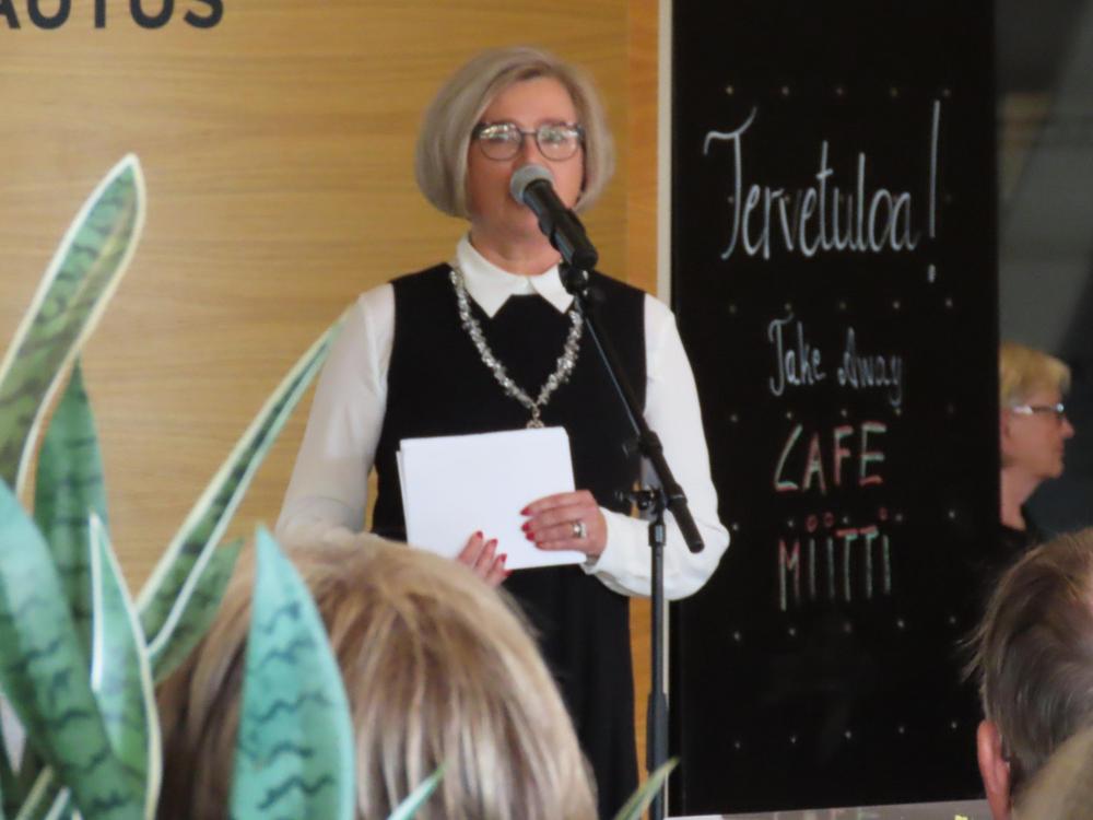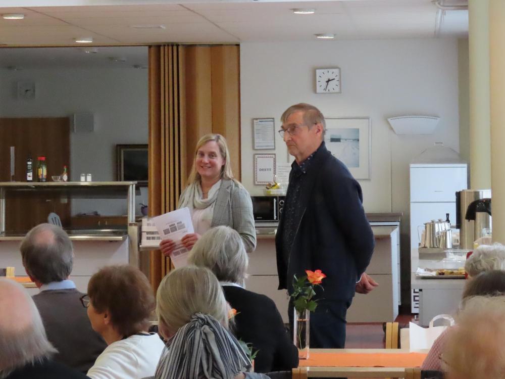 Näytöksen jälkeen klo 16.00-17.00 oli Seinäjoki-Areenalla senioripiirin juhlakahvitilaisuus Senioriliiton 50-vuotisjuhlan kunniaksi. Puheenjohtaja Taija Hakolan lisäksi puheenvuoron käytti liiton uusi toiminnanjohtaja Maarit Kuikka. He jakoivat myös muutaman huomionosoituksen. Osallistujia oli 14 eri senioriyhdistyksestä. (Klikkaamalla kuvat suurenevat.)