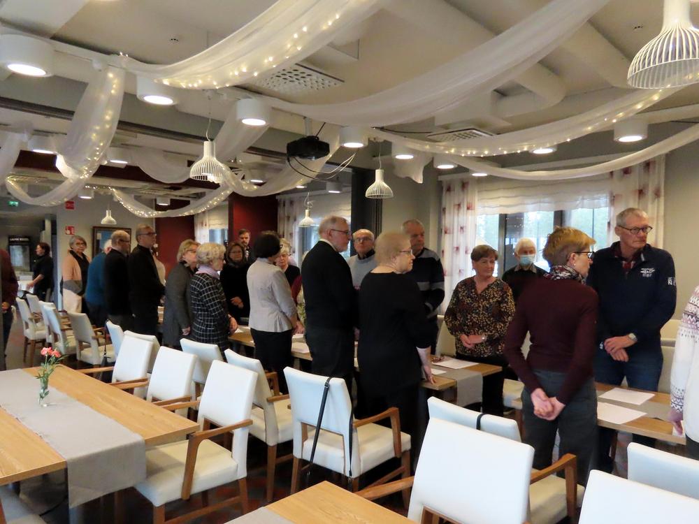 - Ke 20.10. klo 13.00 Lounastapaaminen ravintola Simpsiönkullaksessa. ja samassa yhteydessä pidettiin syyskokous. Arvontaa järjestettiin. Ruoka todettiin jälleen erittäin maukkaaksi. Mukana oli 36 jäsentä, jotka kunnioittivat myös vuoden aikana poismenneiden jäsenten muistoa. - Kuvia klikkaamalla ne suurenevat ja kuvatekstit näkyvät.